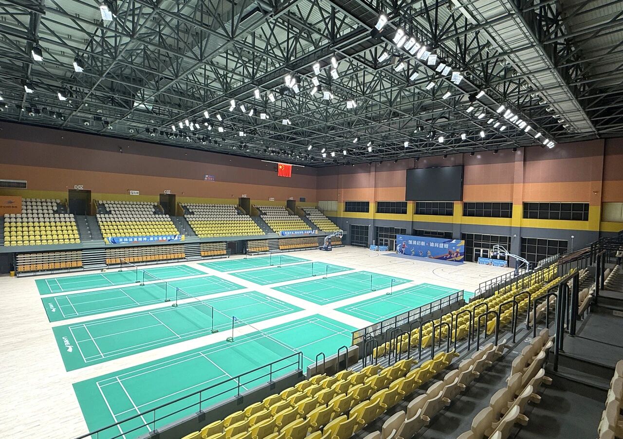 此外,金陵體育還提供了近1200座的電動伸縮看臺座椅系統(tǒng),這些座椅不僅可以靈活收放,還確保了觀眾在觀賽過程中的舒適與安全。在羽毛球場地方面,鋪設了6片完全符合BWF世界羽聯(lián)認證的競賽級運動地膠,并配備了專業(yè)的金陵羽毛球器材,為羽毛球運動提供了最佳的競技舞臺。